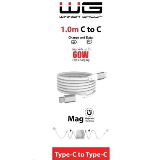WG - Datový kabel Type-C na Type-C, 1 metr, 3A, 60W, magnetický samonavíjecí, bílá