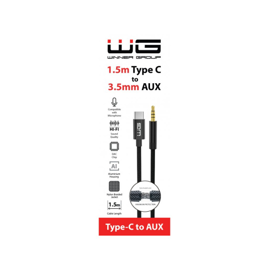 WG - Kabel Type-C (male) na AUX 3,5mm jack (male), 1,5metru, DAC chip, černá