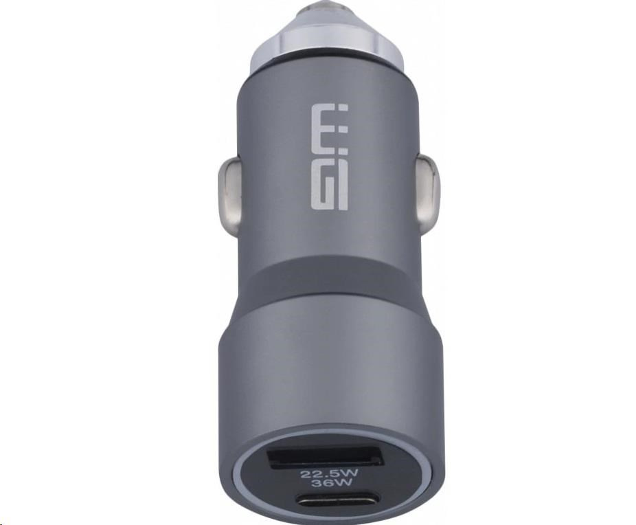 WG - Nabíječka do auta 2x USB 58,5W , 1x USB-C PD 36W + 1x USB-A 22.5W, stříbrná