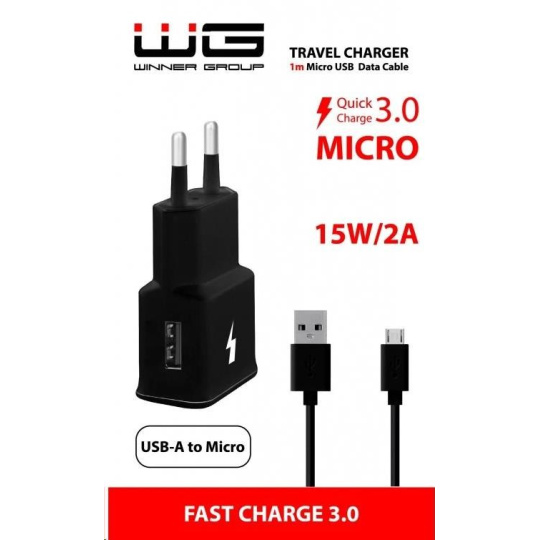 WG - Síťová nabíječka 1x USB-A, Quick Charge 3.0, 5V-9V-12V + kabel USB-A na Micro USB, black