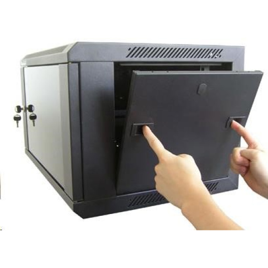 Univerzální jednodílné rozvaděče jsou určené pro montáž na zeď. Rozvaděče jsou výborně řemeslně zpracovány a mají elegantní vzhled. Jejich připevnění je snadné díky přibalenému patentovanému montážnímu panelu. Vyrobeny jsou z válcované oceli, nosné části jsou z oceli tloušťky 1,5mm, ostatní z 1,2 mm ocelového plechu. Konstrukce dovoluje statickou zátěž 60kg. Dodává se s montážní sadou. Provedení: dveře - bezpečnostní kalené sklo, zaměnitelný směr otevírání, uzamykatelné zádní kryt - plný boční kryt - plný, snadno odnímatelný, možné vybavit zámkem horní kryt - perforovaný, s pozicemi pro dva ventilátory