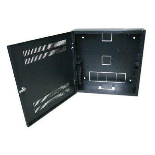 šířka: 540mm, hloubka 150mm, perforované dveře, 1x zámek, černý