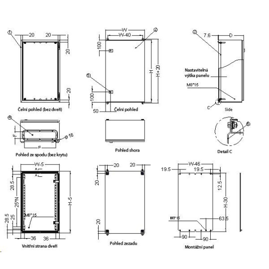 - tloušťka montážního panelu 2,5mm, válcovaná ocel