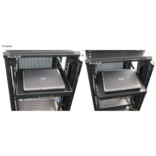 XtendLan 19" výsuvná police s perforací 1U/350mm, nosnost 45kg, černá