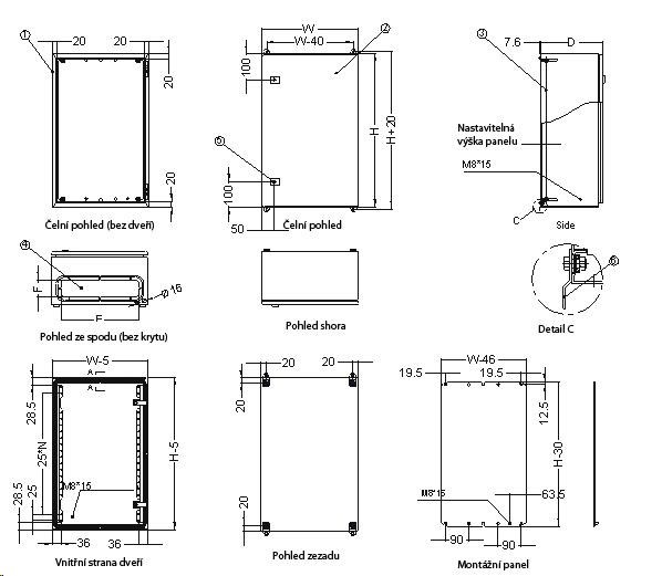- tloušťka montážního panelu 2,5mm, válcovaná ocel
