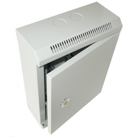 Kovový rozvaděč pro vnitřní instalace na zeď. Pro aktivní prvky a jiné. Rozvaděč je opatřen zámkem a ventilačními otvory.