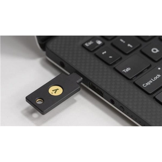 - Podporuje autentikační protokoly FIDO U2F a OTP pro webové služby či desktopové aplikace