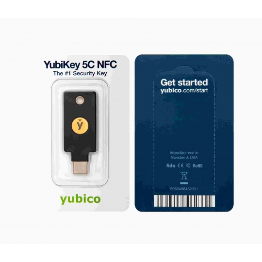 YubiKey 5C NFC - USB-C, klíč/token s vícefaktorovou autentizaci (NFC), podpora OpenPGP a Smart Card (2FA)